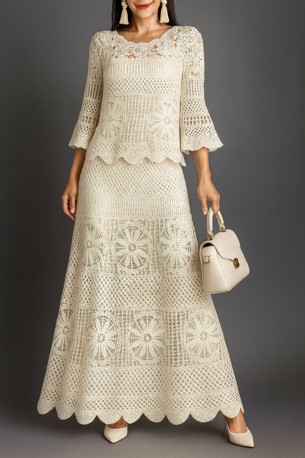 Forma del producto Vestido Largo 383 EXTERIOR ✅TEJIDO PRINCIPAL 93% Tela Encaje Algodón Fino ✅TEJIDO Secundario 7% Fibra Natural. $ 1,000.00 Talla XS S M L XL 2XL 3XL 4XL Quantity Añadir a la cesta Pairs well with